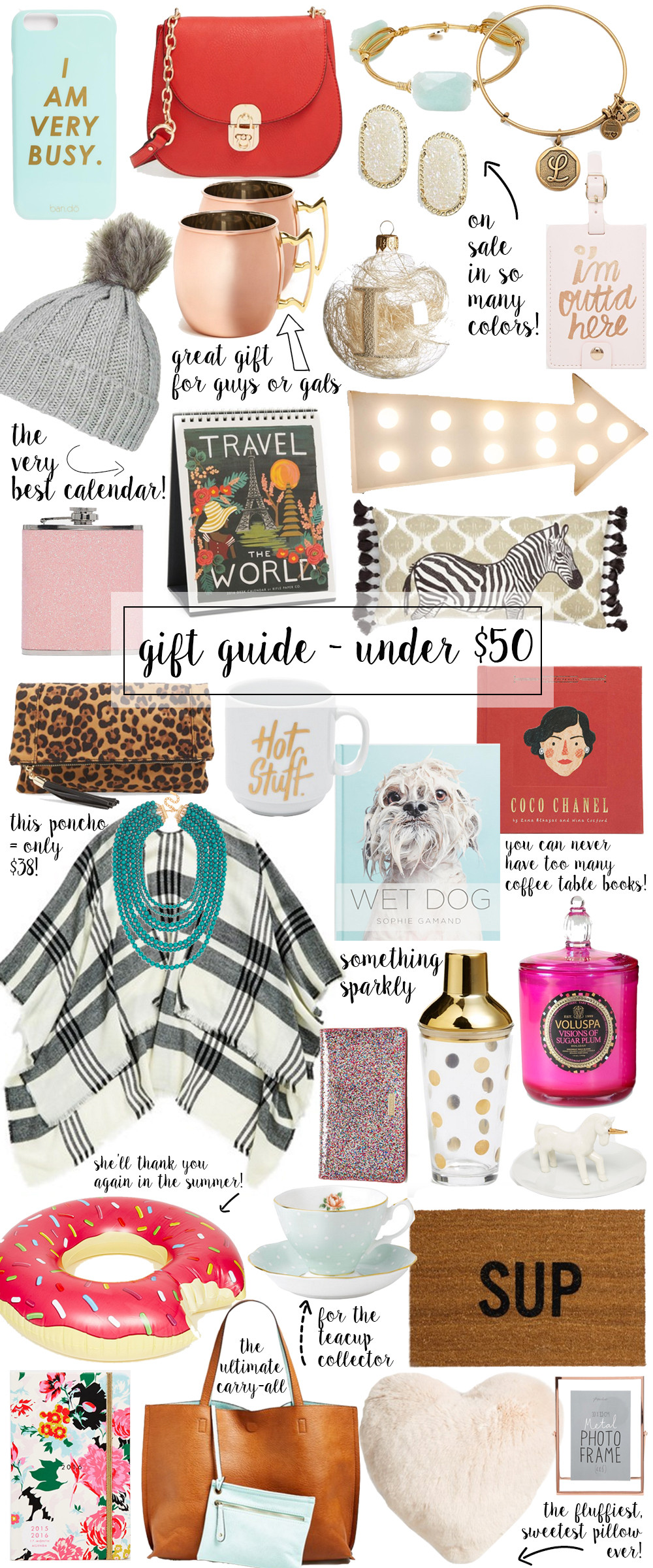 The biggest shopping week of the year is finally upon us, and to get it kick-started, I’m sharing another gift guide – this time featuring gifts that are budget friendly at $50 or less. Whether for a white elephant party, gifts for your co-workers or for your besties, these picks are perfect for everyone on your list.