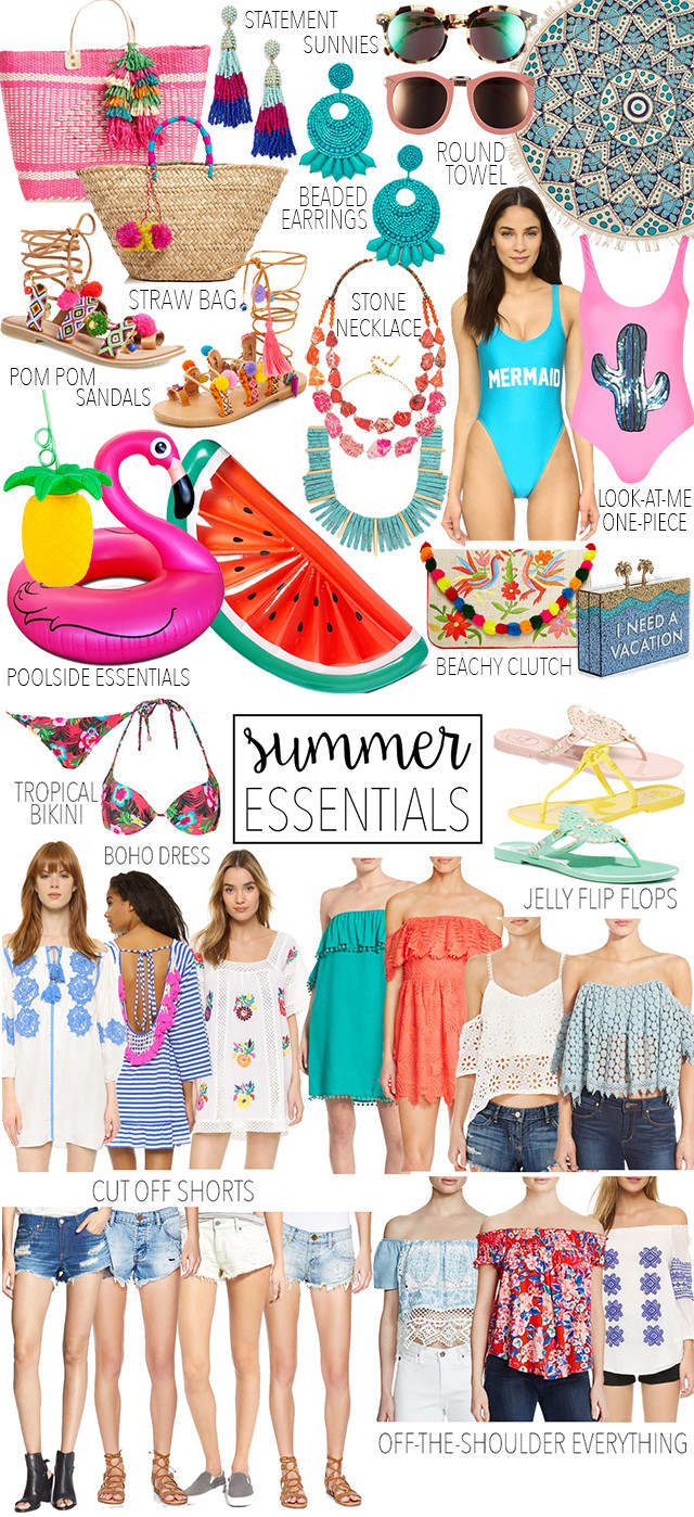 The rising temperatures and sunshine-y days are a promise that summer is just around the corner, which means shopping for the season starts now. Just in time for the long, vacation-filled days of summer, I’ve rounded up a list of my summer must-haves for summer 2016 for you to peruse. To shop the items in the image, simply click on them directly and to shop more of each of my listed essentials, keep scrolling down because I’ve found more summer essentials that you simply can’t miss!
